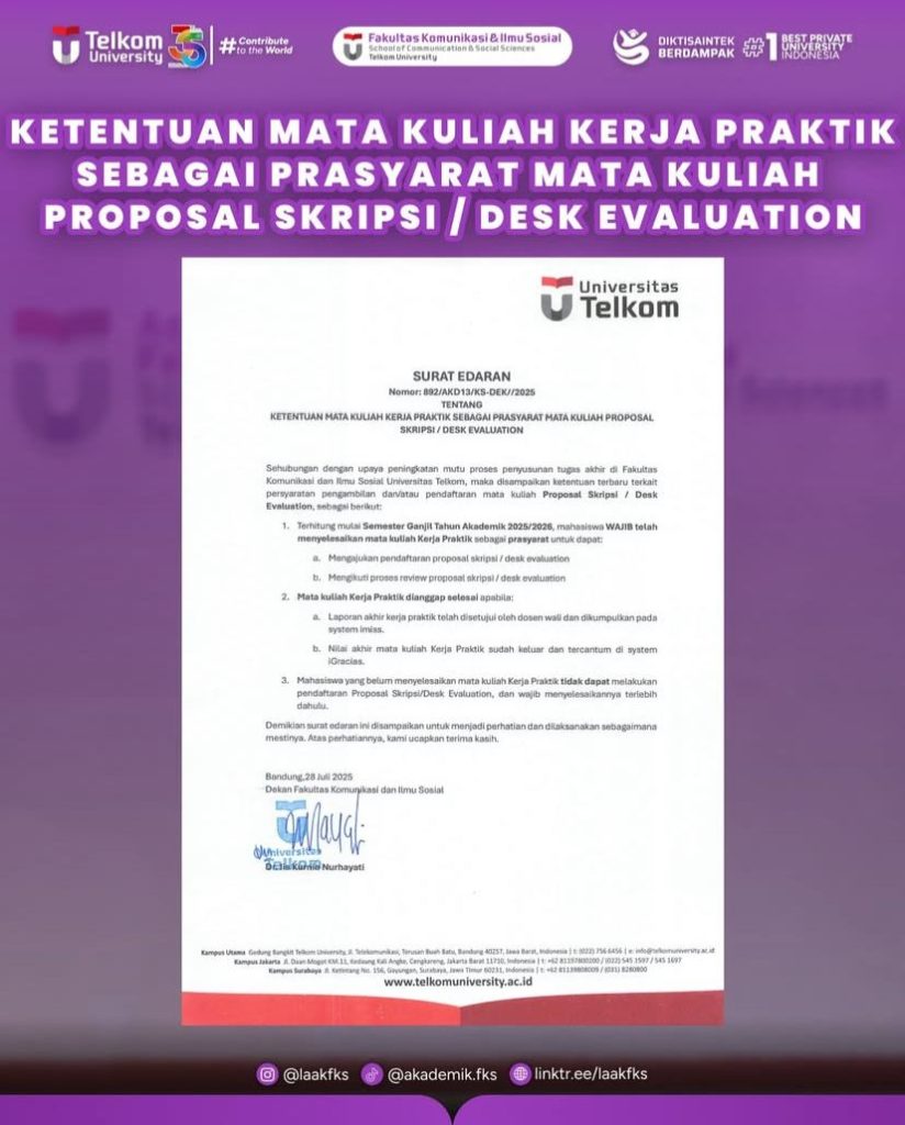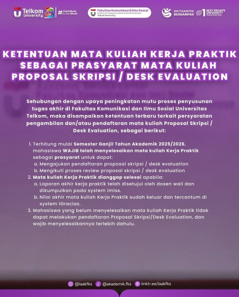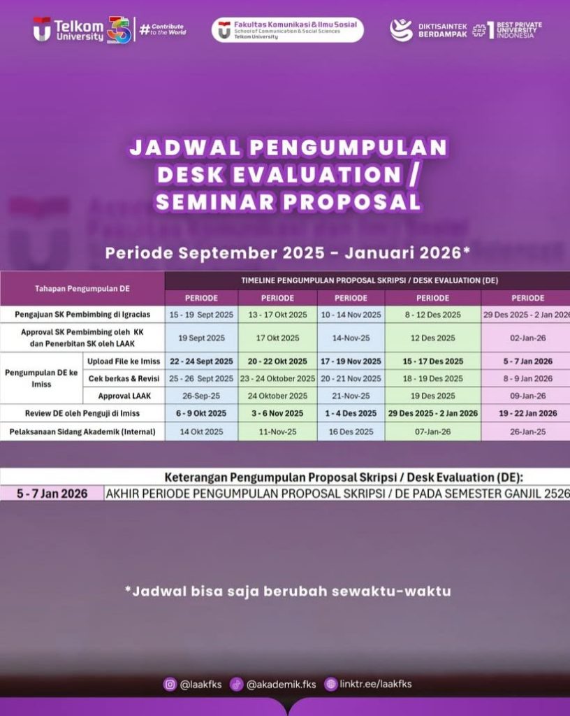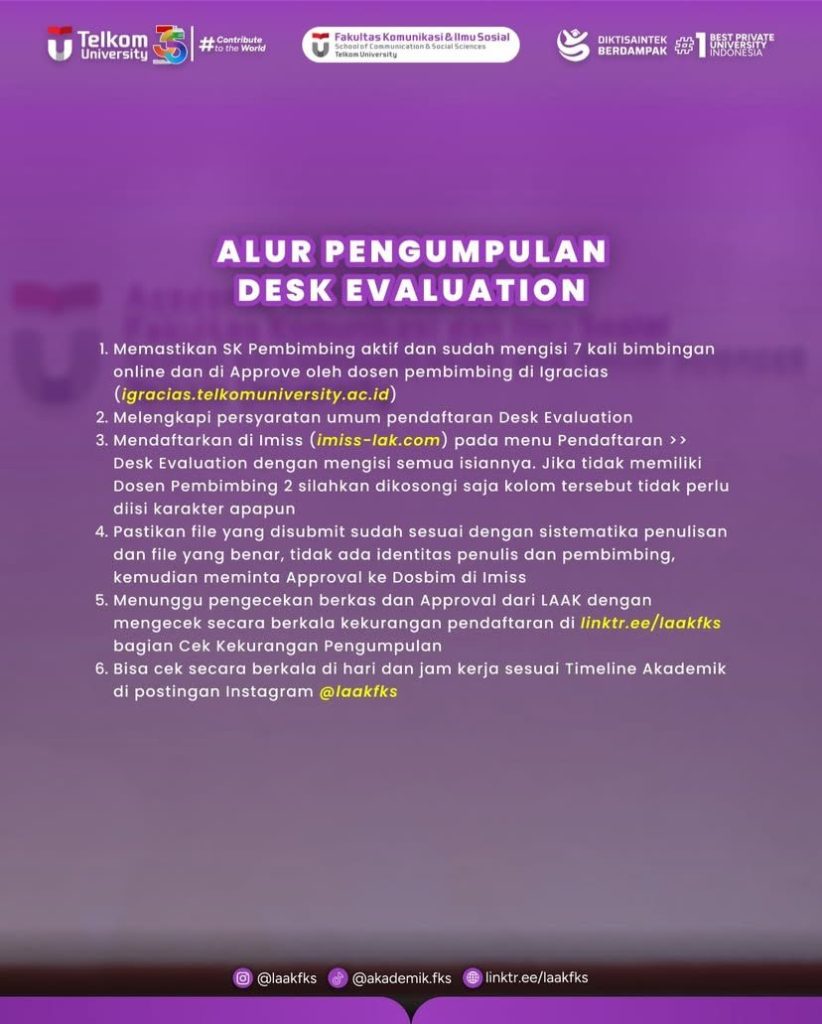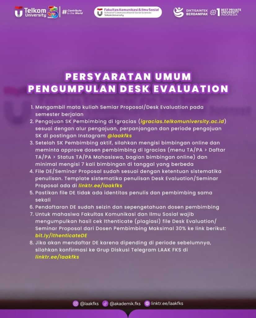 Kami informasikan kepada mahasiswa Fakultas Komunikasi dan Imu Sosial terkait Pengumpulan DE (Desk Evaluation)